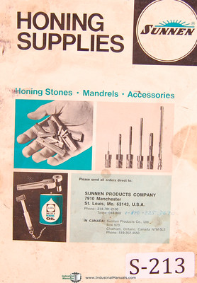 Sunnen Honing Stones Mandrels Accessories Replacement Parts Manual 1975 Ebay