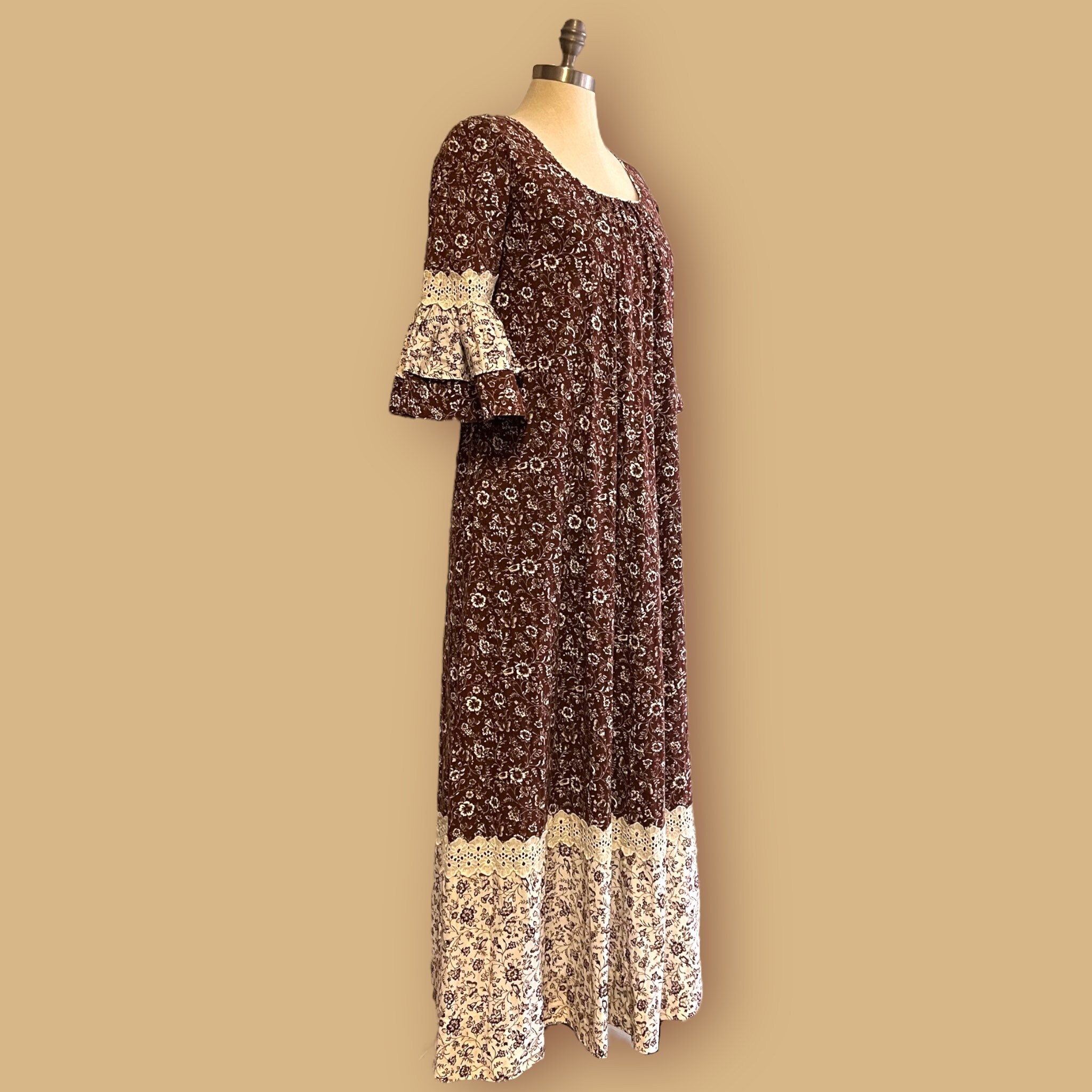 Vintage Muumuu Hawaiian Dress Lace Ditsy Floral 60s 1970s Flounce Sleeves Small Iuu Org Tr